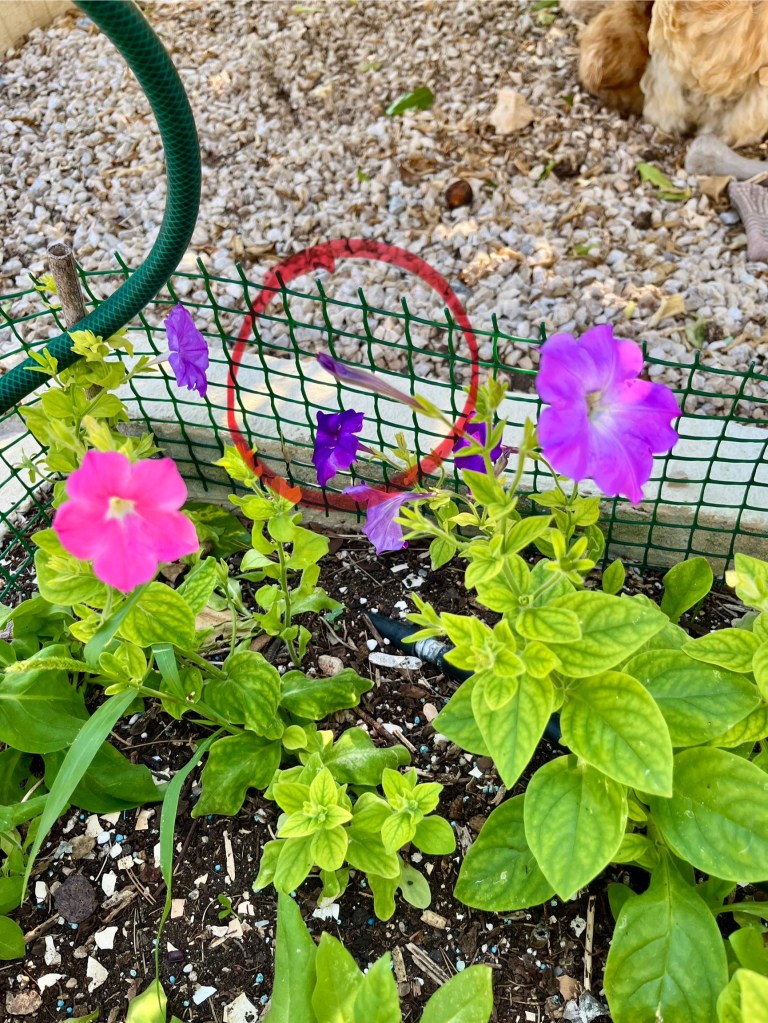 Petunias. I have planted Petunias from seed this year and they have been delightful. Once they get going they flower profusely with new flowers every day. To get the best out of Petunias I deadhead them every morning and sometimes twice a day.