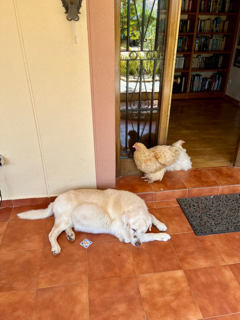 Oh! and the chickens are trying to make Tango the lonely blind Labrador homeless and are disrespecting him. Anyway, on with the gardening.