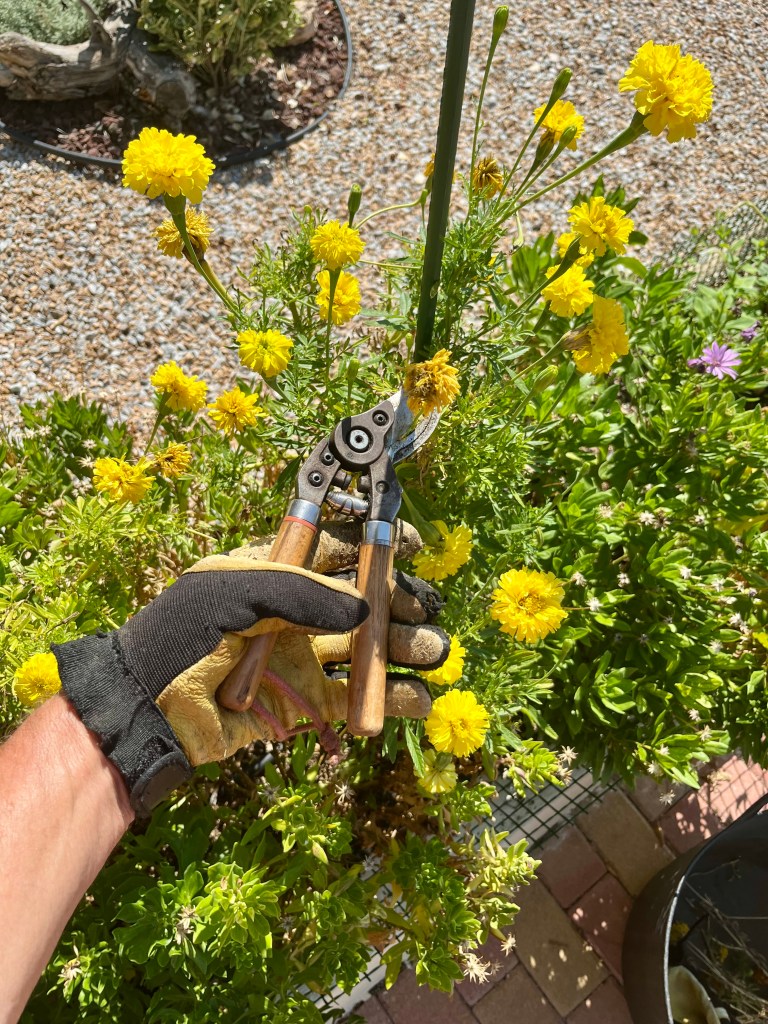 3 thoughts on “I am deadheading night and day, Cruella has a new broom and the chickens are disrespecting Tango”