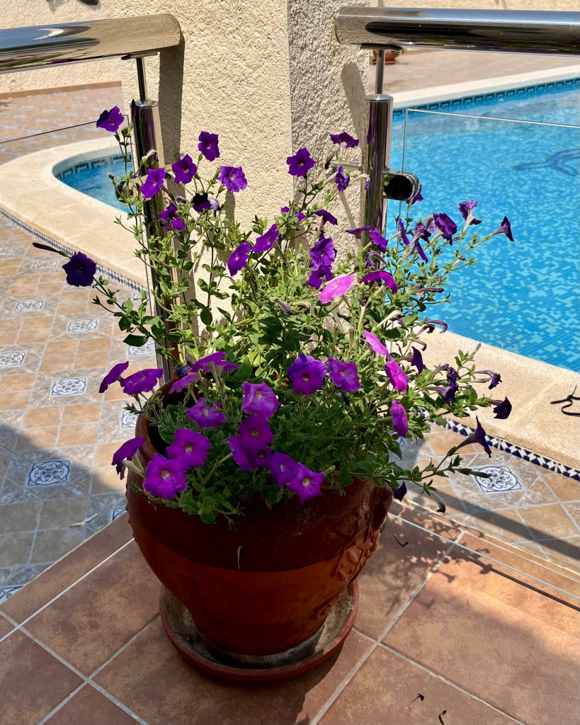 The garden in Spain is in full bloom, but just going over slightly as the blooms become less and we tip towards Autumn. Cruella and I run our Church Kids Summer Club on every Thursday in August and it is exhausting. However, every year I manage to sneak a bit of gardening into the children. This year they are painting flower pots and then I give them an Aeonium cutting that they plant.