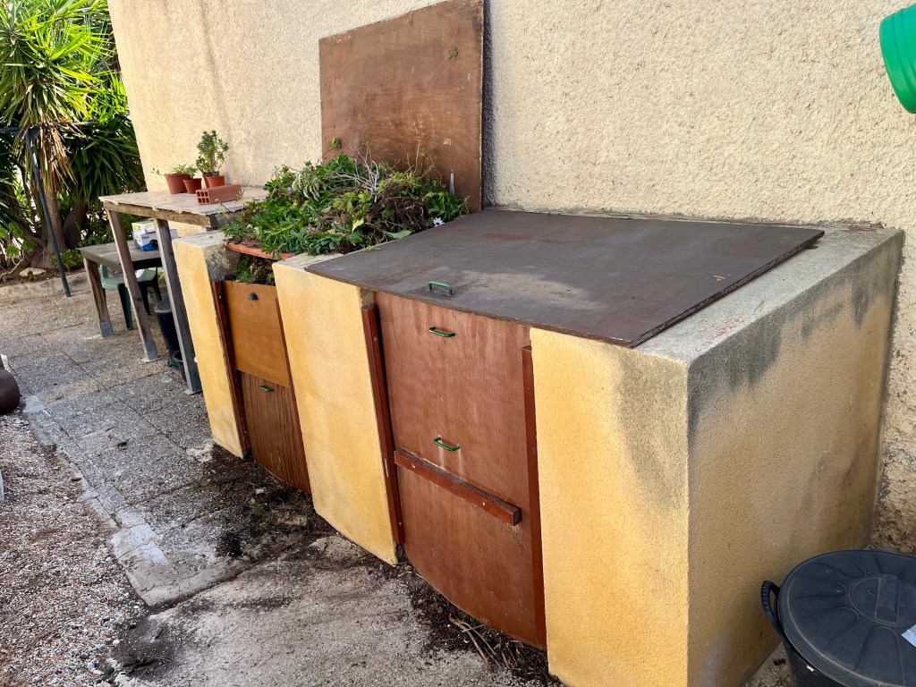 As you would expect, I have a purpose built composting system consisting of two large bins with lid for easy access and doors that can be raised to allow me to get at the compost from the bottom. The photo below shows my composting system.