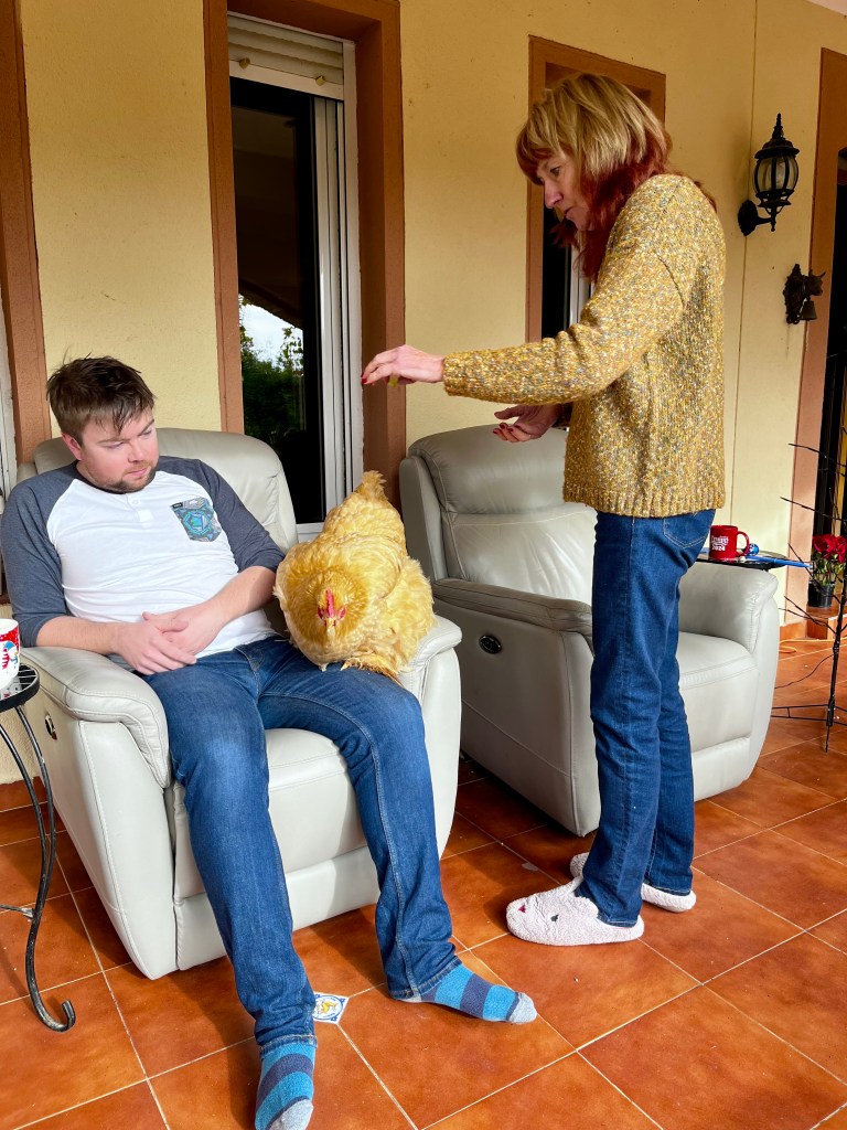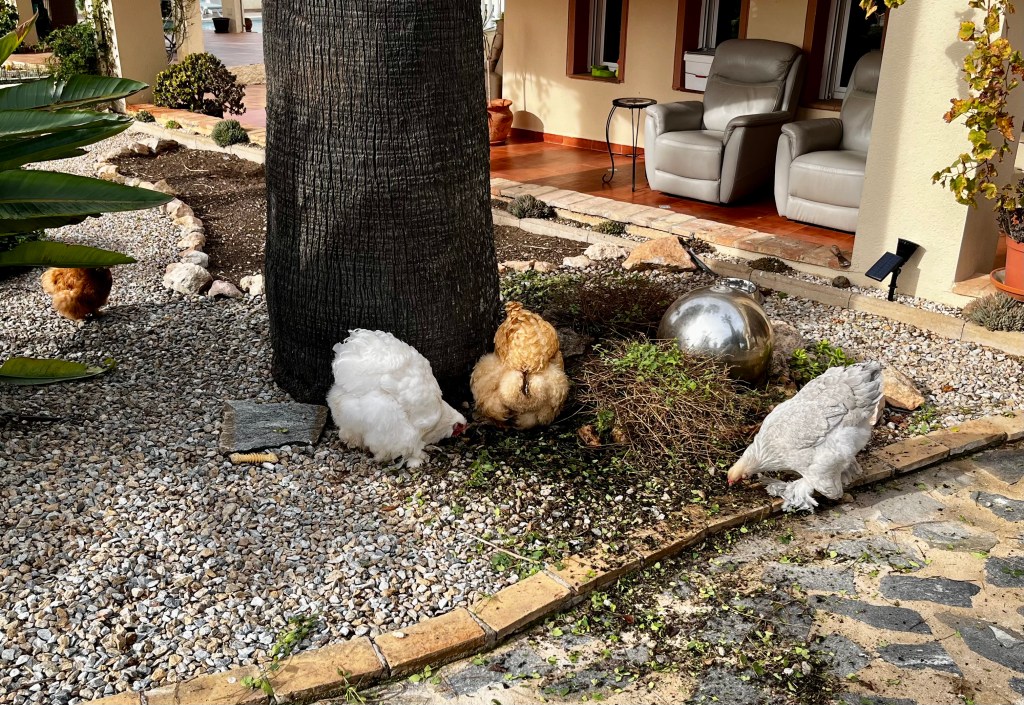 I have to admit that my annual winter cutback has been much disrupted by the visit of my idiot son. Cruella (my wife) has been beside herself for weeks preparing for his visit, especially since he will be taking his advanced certificate in chicken care. Under Cruella’s supervision he has been taking exams from The University of Applied Chicken Care – motto: “Sapientia ab Ovo”.