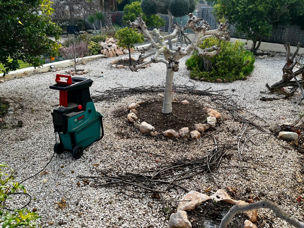 At the end of the cutback process don’t just throw everything away, instead shred what you can and then either compost the material, or where appropriate spread it as a mulch under your trees. See the photos below.