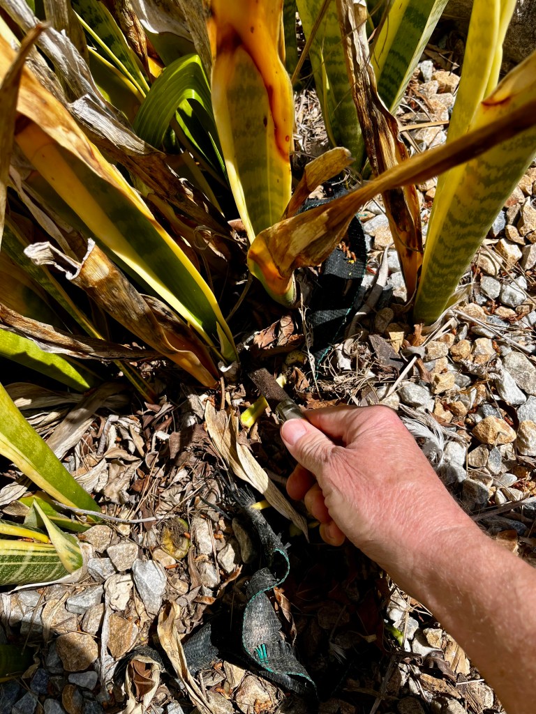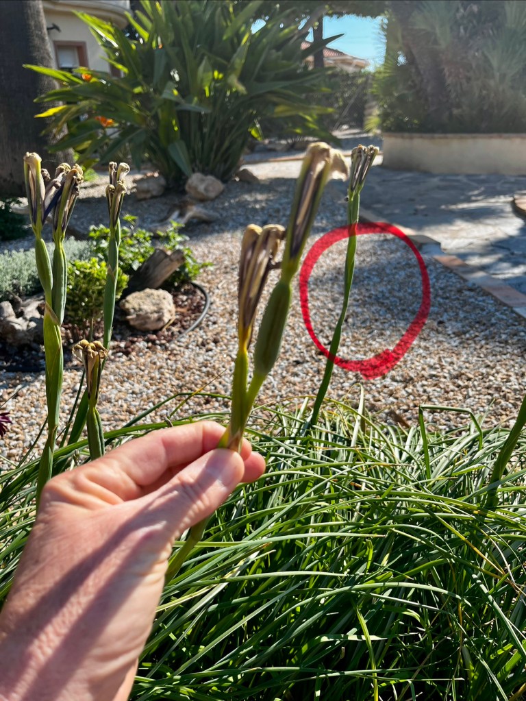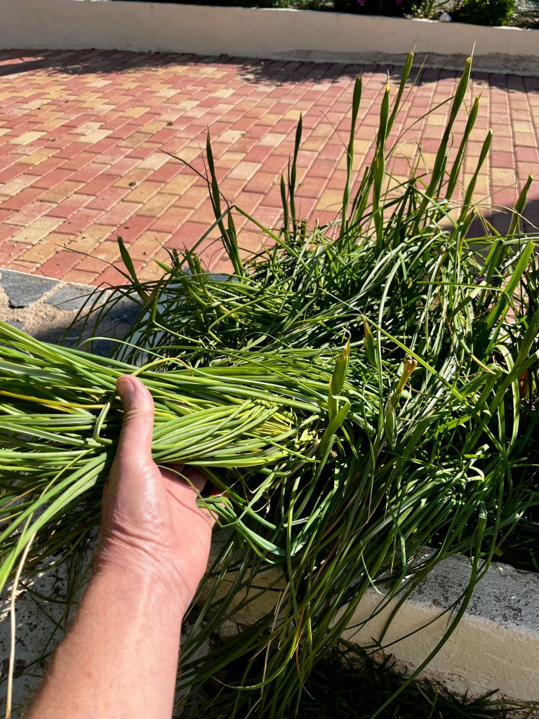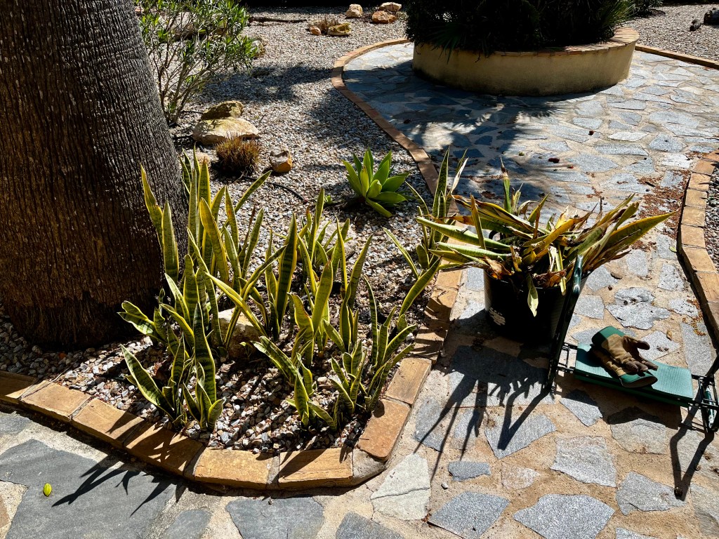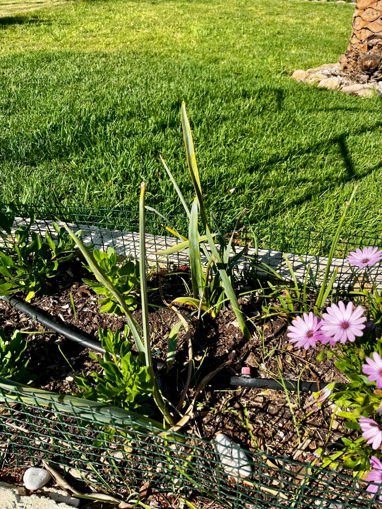 Deaheading and tidying early flowerers. By now all the early Spring plants have gone over and it’s time to tidy up plants such as Daffodils, Iris, Ice plants and even Mother in Laws Tongues.
