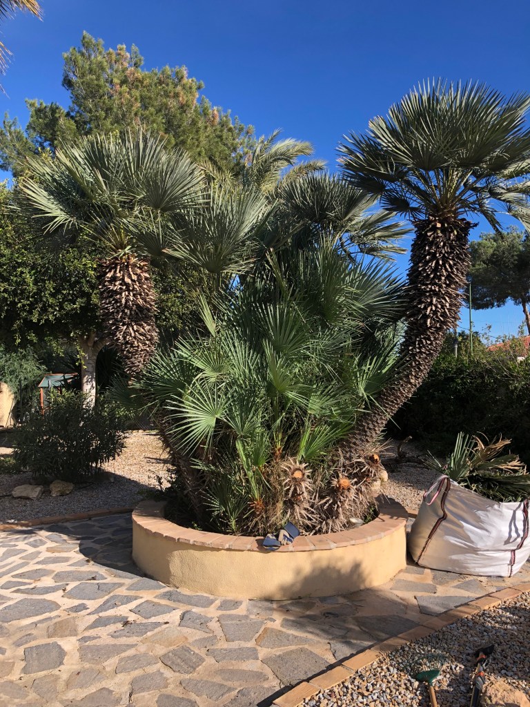 Time to prune palm trees. Lots of people ask me when is the right time to prune palms. And the answer is right now whilst the sap is not rising and the Palm Weevil is not flying. If you prune later in the year there is a danger of pathogens and disease getting into weeping cuts and that the cuts will in turn attract the Palm Weevil. Where possible I would use professional Palmistas for large trees as anything over about 10 foot can be dangerous. In addition a professional Palmistas will notice any problems with your trees and will be able to advise accordingly.