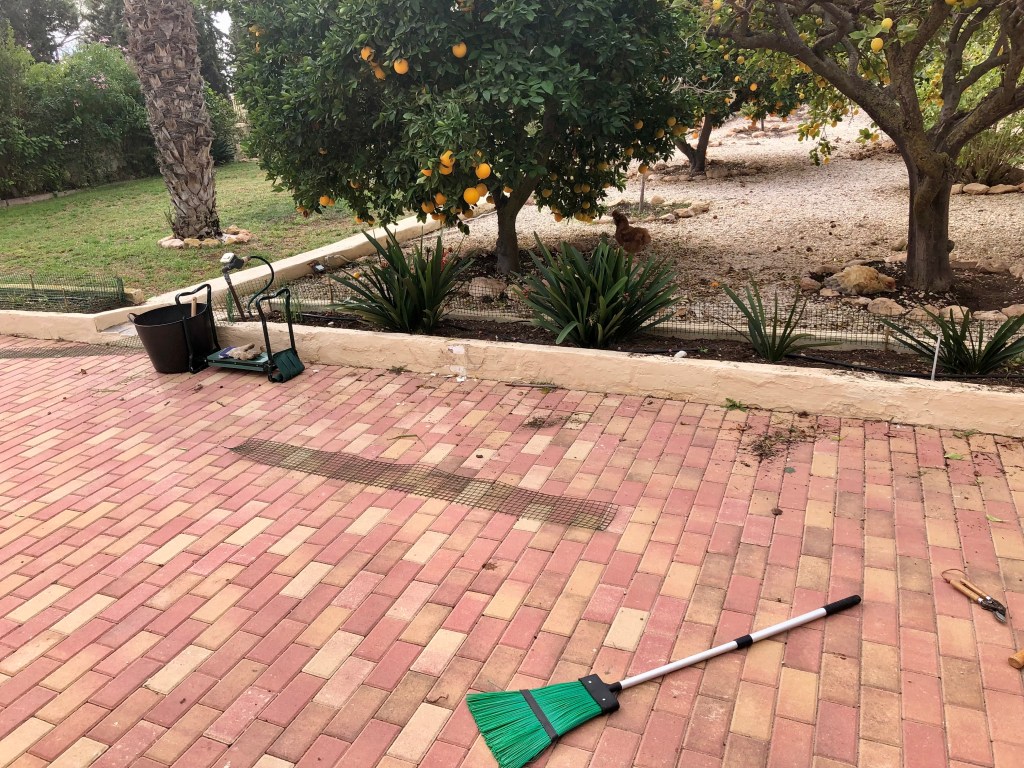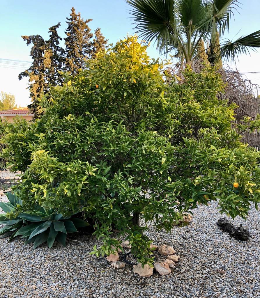 Removing the last of the orange crop. We have been juicing oranges since early December and now it is time to remove the last of the crop. The reason for removing the crop is twofold. Firstly, the blossom will be coming soon and you don’t want the tree to waste its energy on last years crop (the fruit will not get any bigger). Secondly, you will need to prune and open up the tree before the blossom arrives.
