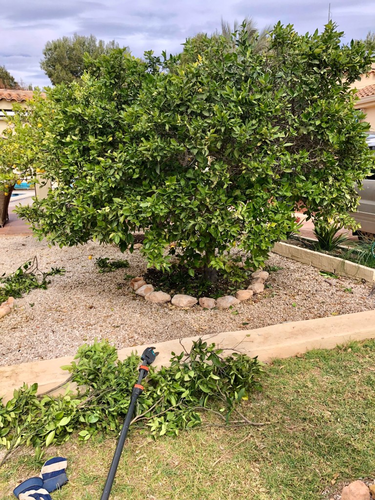 Cloud pruning and making trees interesting. Trees like gravelled areas, are aspects of Spanish gardens that are often left as uninteresting lumps punctuating uninteresting gardens. But you don’t have to settle for this. Just because you inherited this behemoth of a tree, or, you just let it get out of control doesn’t mean you have to leave it like that. Cloud pruning and shaping your trees will bring amazing levels of interest to your garden. If you are worried about getting up a ladder then just call in the professionals and tell them your ideas.