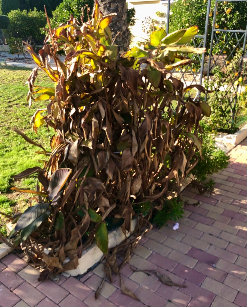Perhaps the worst item of neglect was the death of my poor little advocado cutting. I had been growing this on for two years from a stone, and I was thinking of planting it in the ground in the autumn. The photo below shows what is left of it.