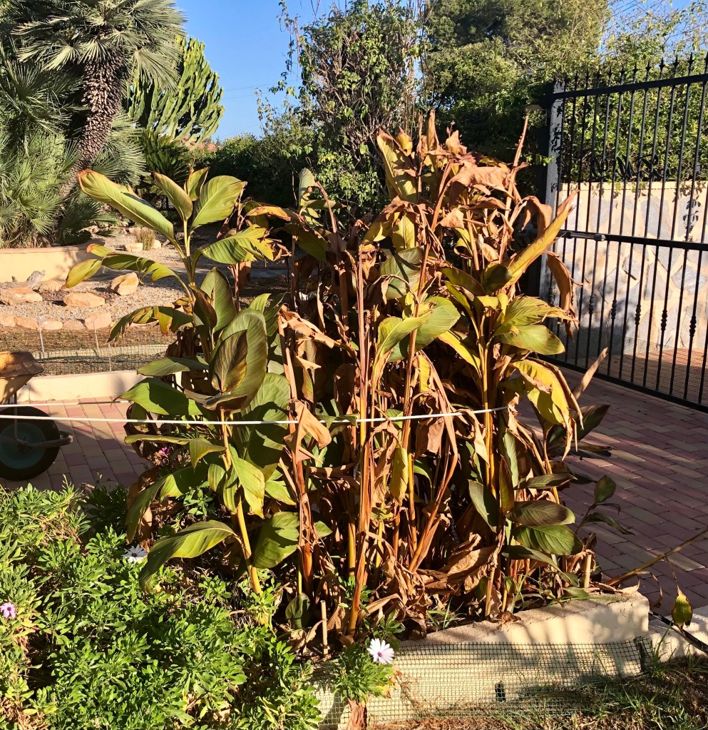 Cutting back Canna. If you have followed my instructions – and I am sure you have – you will have left your Canna to wilt and wither to ensure that all the sunshine can be gathered from the dying stems and taken back into the rhizomes (ugly bulbs). The photos below show a selection of my dead and dying cannas. Click on each photo for a larger view.