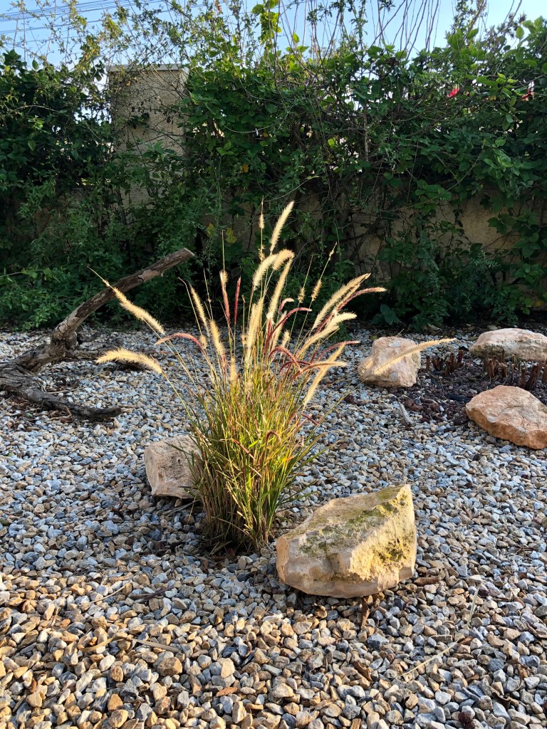 The first photo below shows the end of the drive with the plants overgrown and not providing the sharpness that I want in this sight line. The next photo shows the two main plants pruned back and the sight line restored.