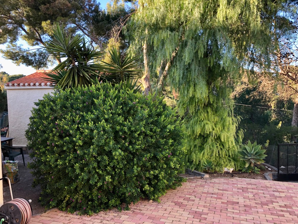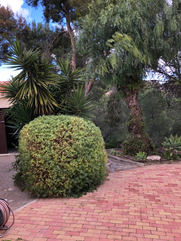 Sight lines are views or viewpoints that exist within any garden large or small that display either the whole garden to best advantage or a particular area. In this case it is the view at the end of my drive. I have planted the end of the drive in various ways but the dominant plants are a Californian False Pepper tree and a Myrtle-leaf milkwort bush. Unless both these plants are kept in shape with regular pruning then the sight line at the end of the drive becomes messy and confused. This is an important sight line for my garden as it is the first thing visitors see as they come down the drive.