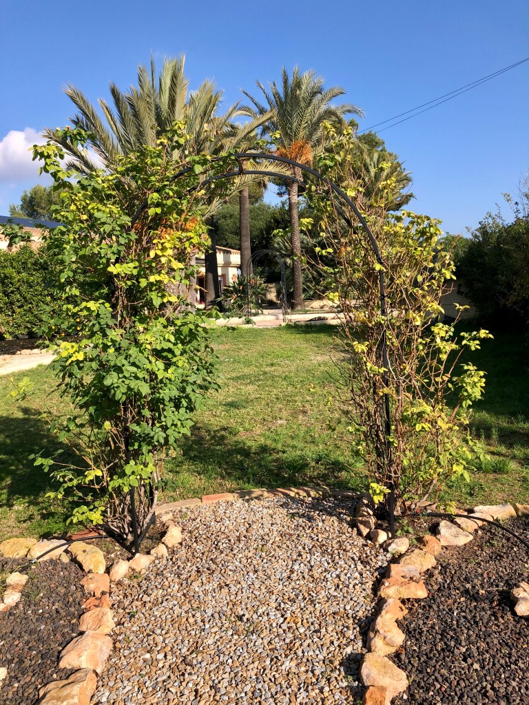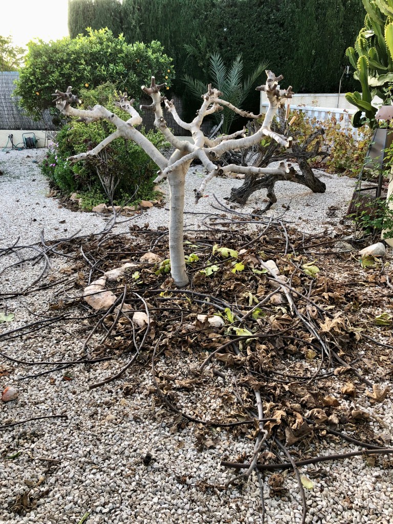 Many people in Spain just leave their grapevines to become a big shapeless, tangled, amorphous mass. But this is not fair to the plant and it will not give of its best when left like this. You need to leave the main stem alone, but cut back all the side shoots to the nearest bud node, and then tie it all in to stop wind rock tearing at the main stem.