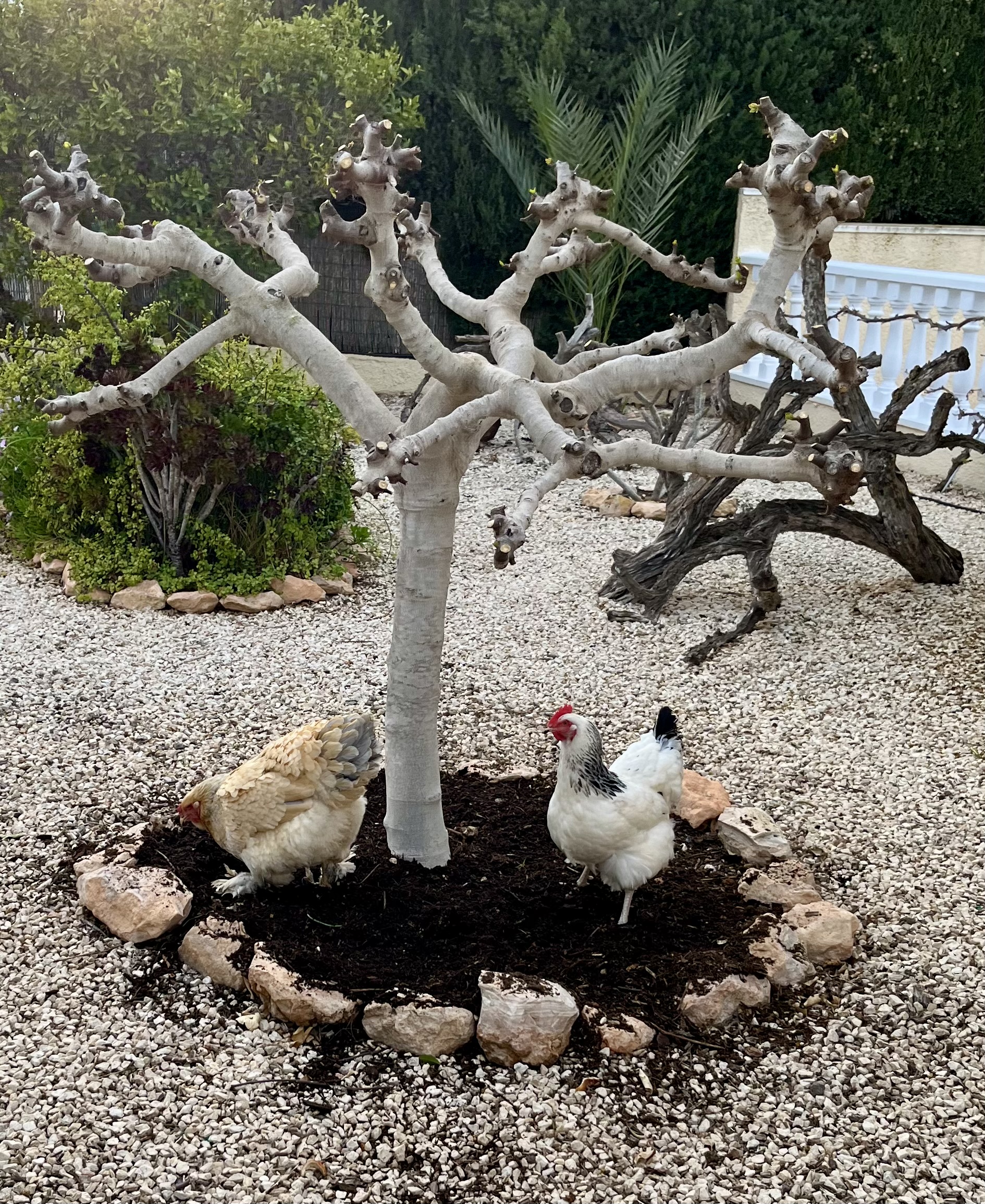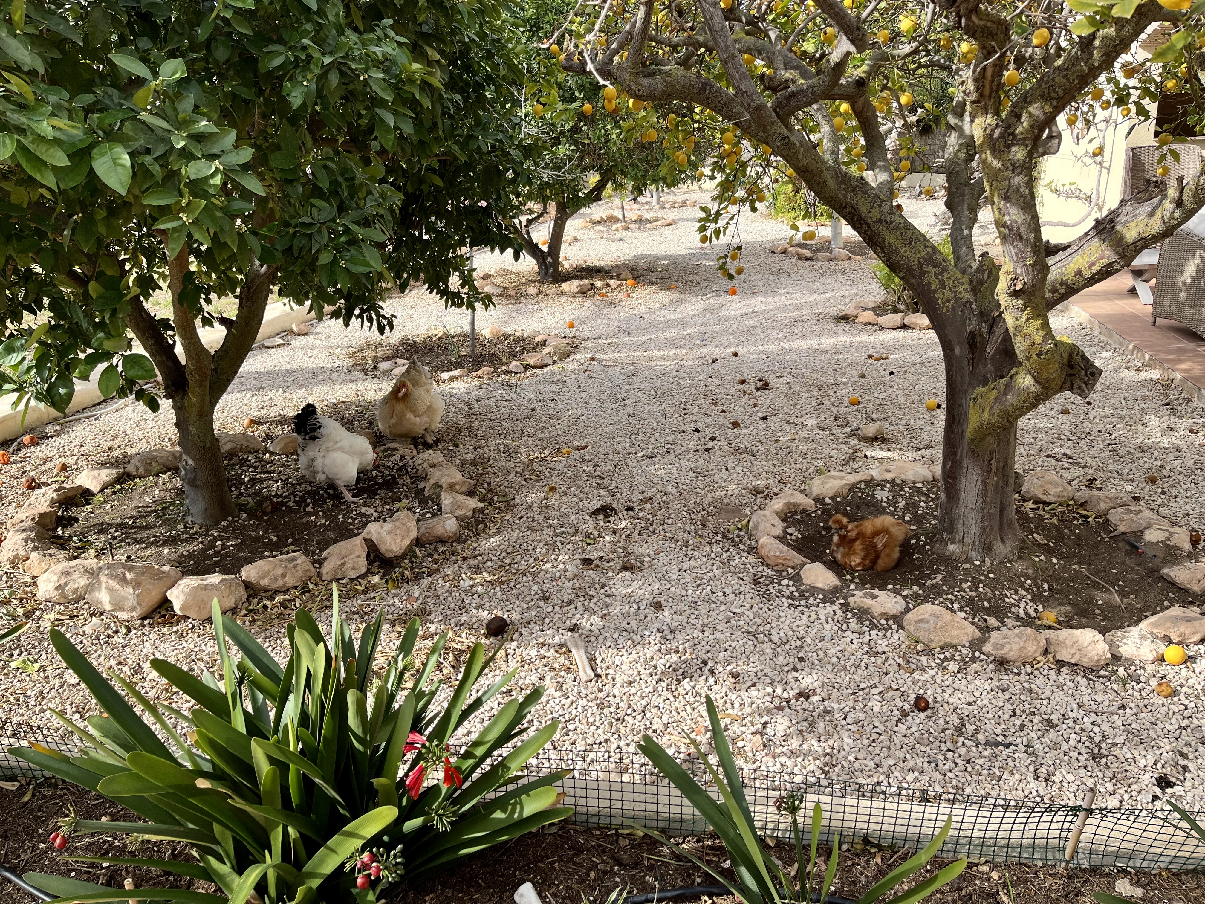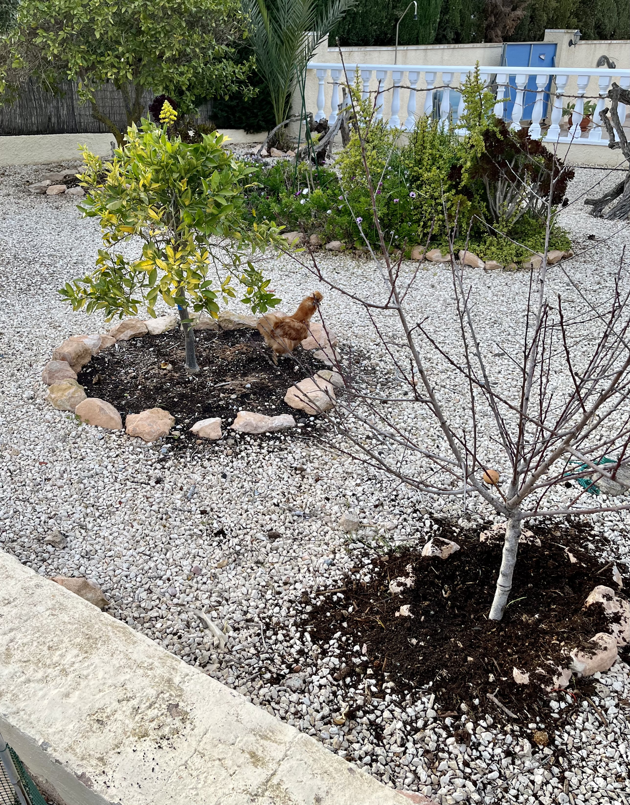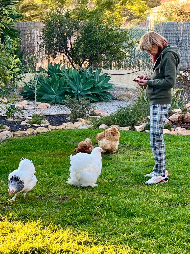 She knows when it is time to begin knitting as the chickens gather in a huddle on our Naya to get out of the cold winds. Helga (her favourite and a really clever chicken) even flys up to the window ledges and taps on the glass to be let in. Cruella (my wife) even begins to gather them up and carry them to bed every night and sometimes stays out there for hours with them; I think they have wine!