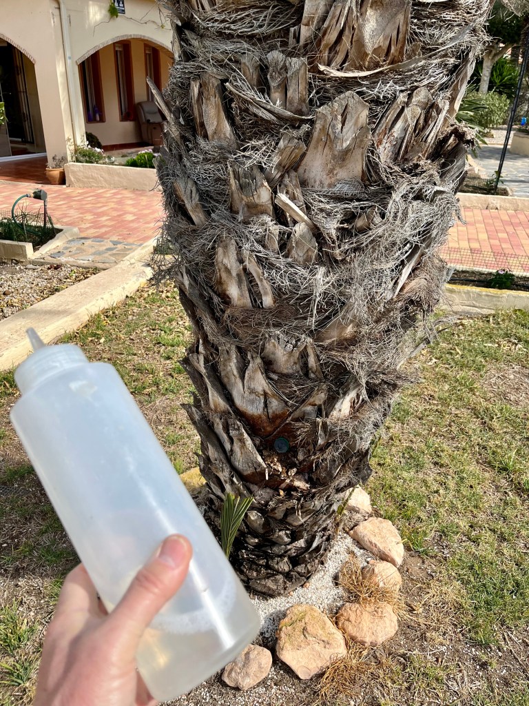Peeling Yucca. If you live in a windy area and you have large Yucca in pots, then now is the time to peel them otherwise they will blow over in the wind and probably smash your nice pot.