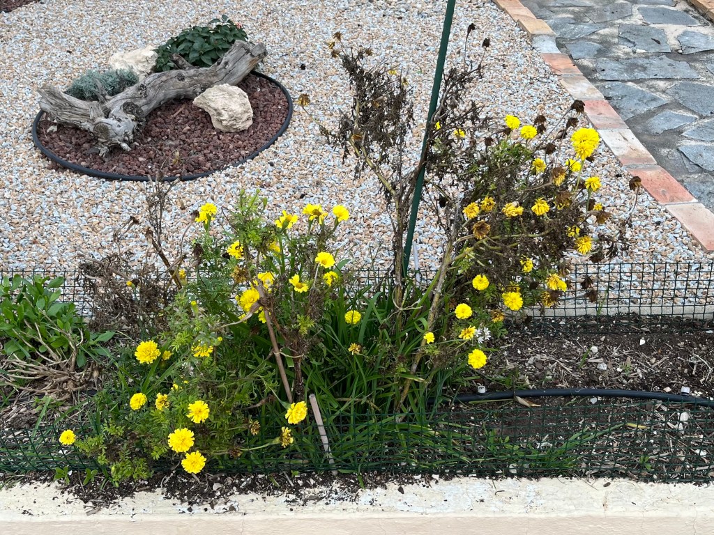 The photos below show my yuccas and other succulents peeled and shorn ready for wintry gusts.