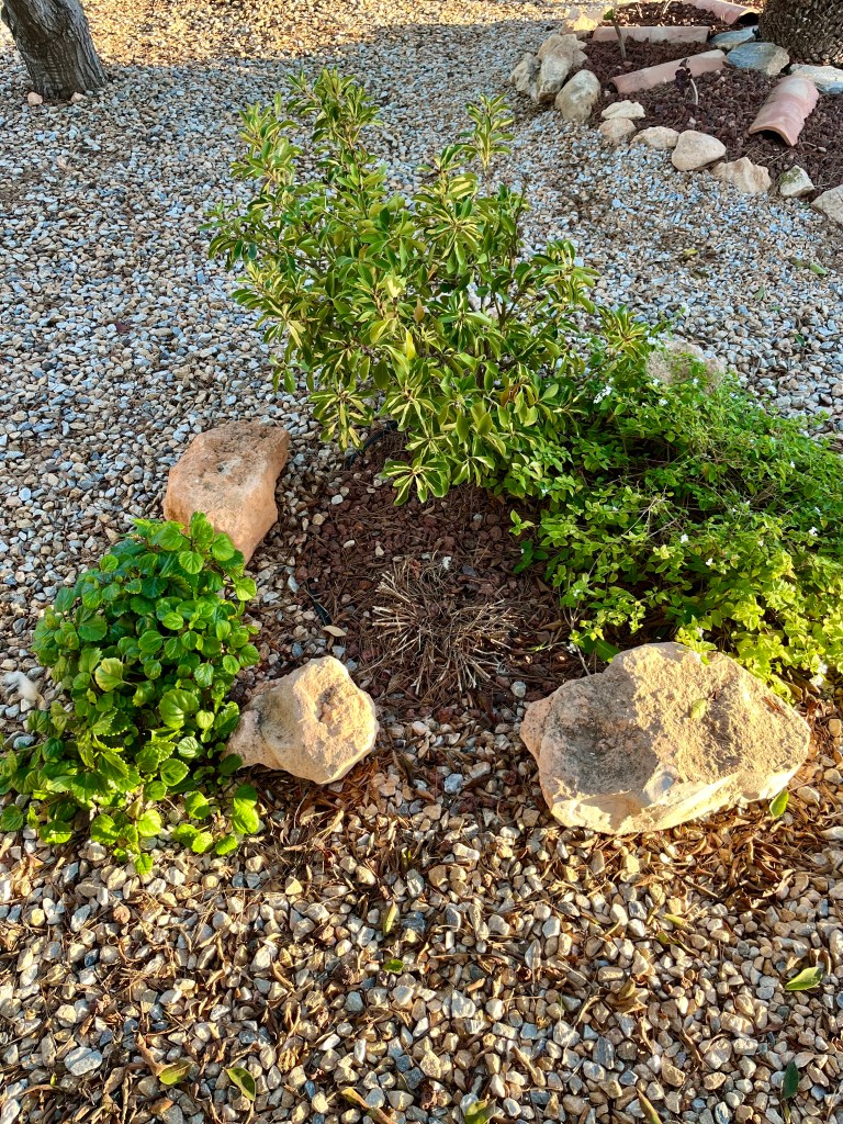 Normally I use short handled lopers for the low growth and my long handled lopers to reach the crown. However, this year I experimented and used my new electric hedge trimmers to cut most of it back. I must confess it was a lot easier although not as neat as normal. The photos below show my efforts.