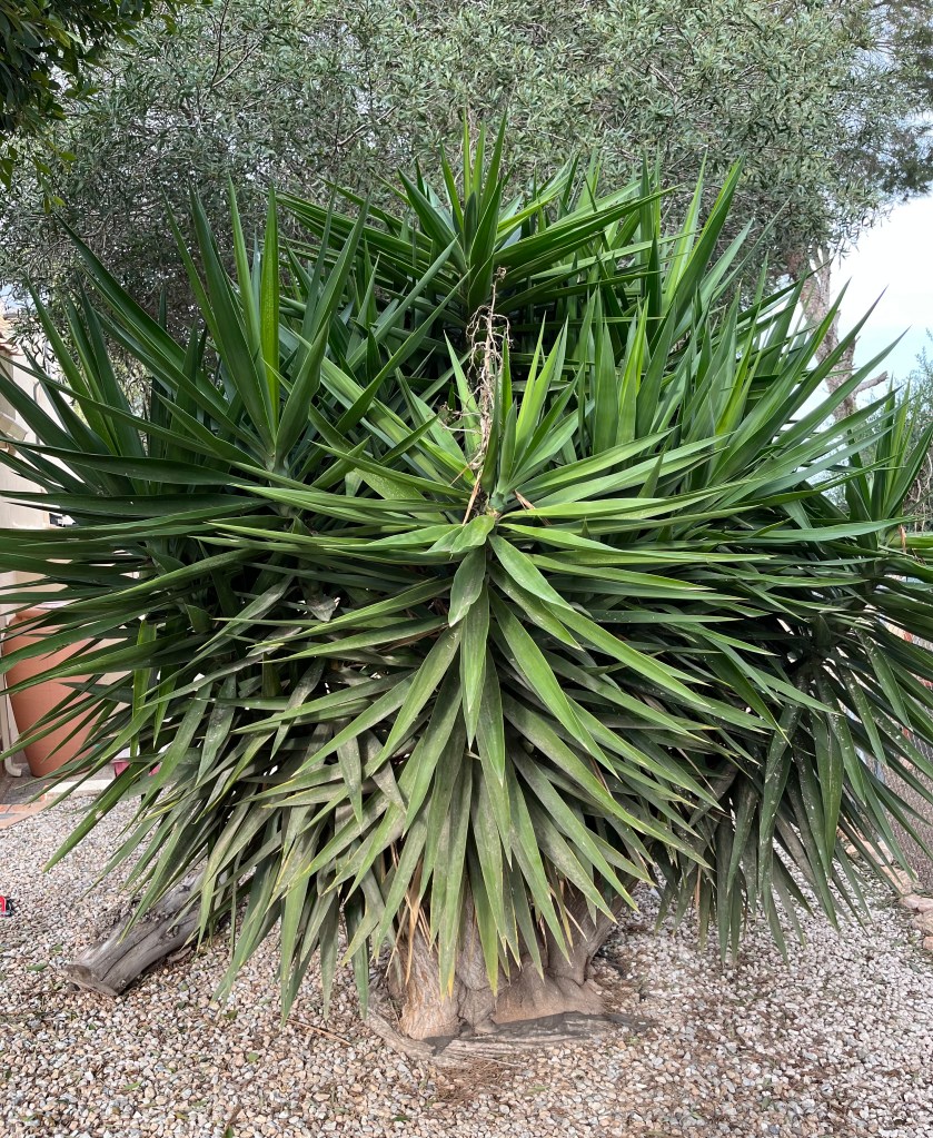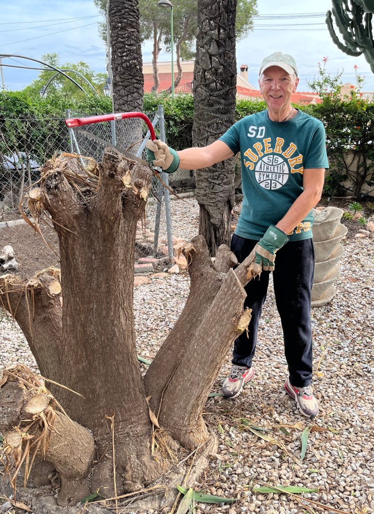 Pruning Mediterranean Fan Palms. December and January are the best time to prune palms as the dreaded Red Palm Weevil will not be flying. I have a professional Palmista for my large palms, but for a stand of Mediterranean Fan Palms I just get stuck in myself. The photo below shows the palms I need to cutback.