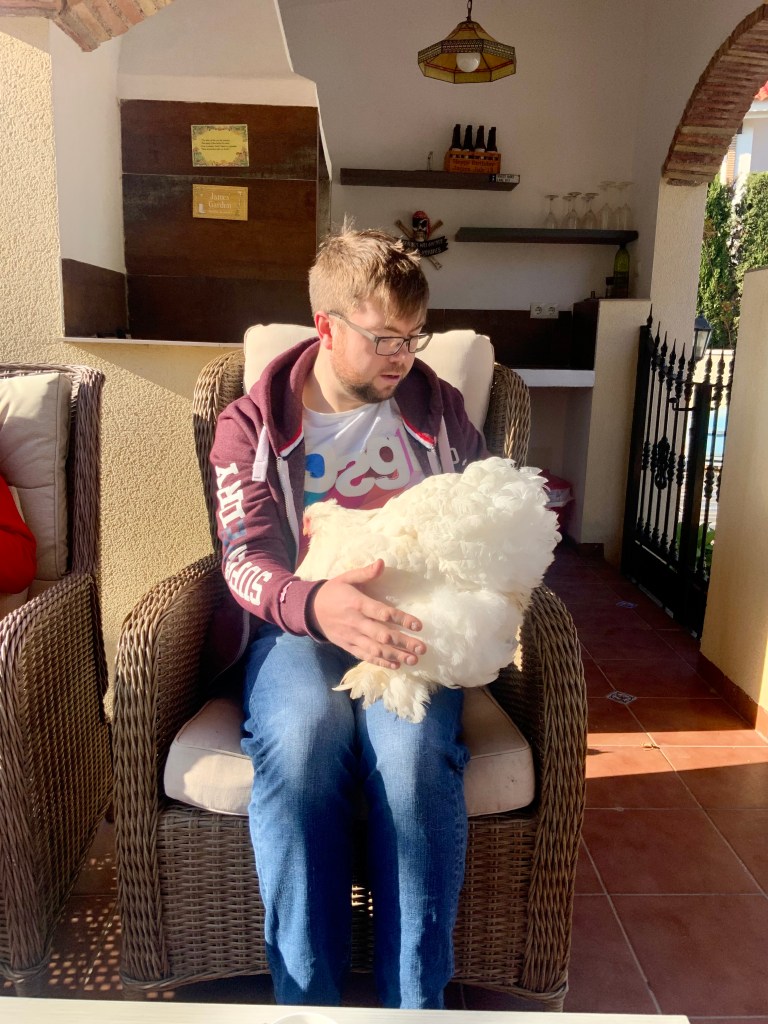 Wings flare, voices rise – Our lost chick returns at last, – Yuletide clucks resound.