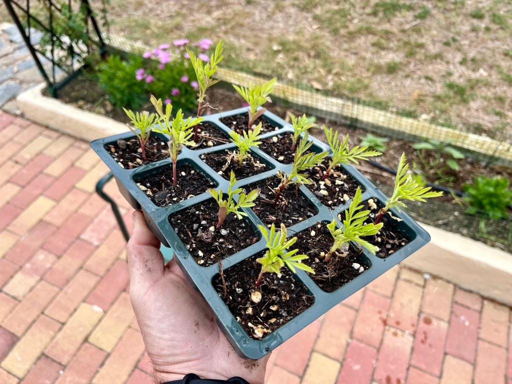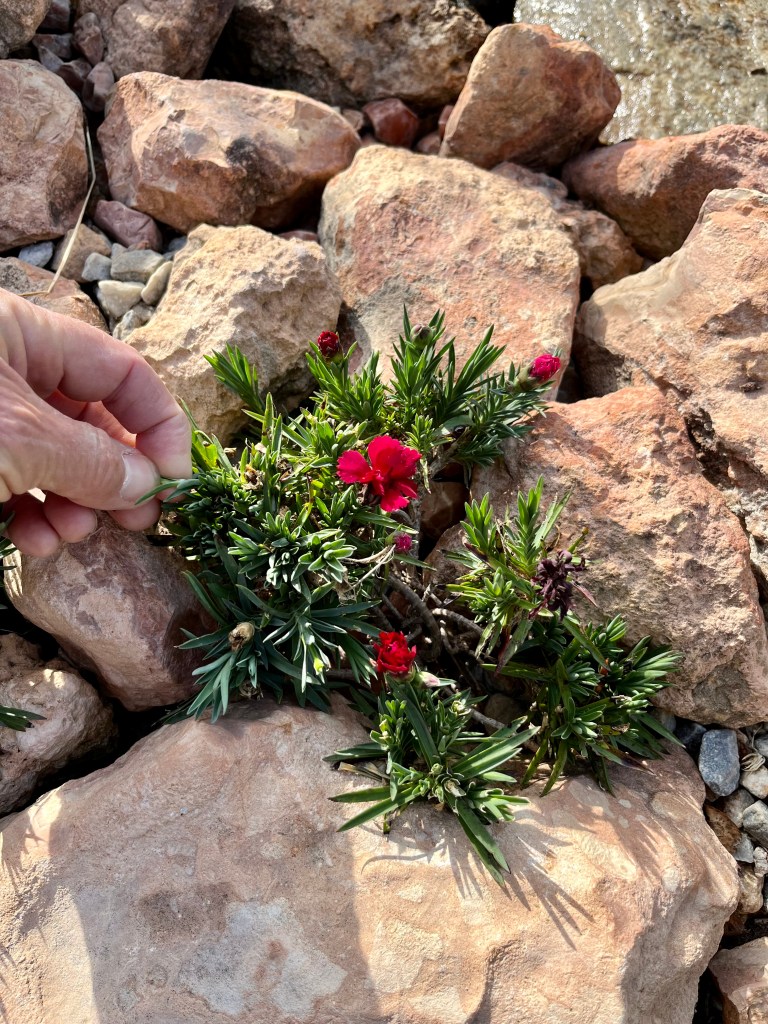 Finally, when planting cannas you need to bury the rhizomes just below the surface of the soil with the old stem sticking out of the soil. The new flowers will come from nodes on the rhizomes and not from the stem. The stem is only there to stop water seeping into and rotting the rhizomes. The photo below shows some that I am just replanting (note the depth).